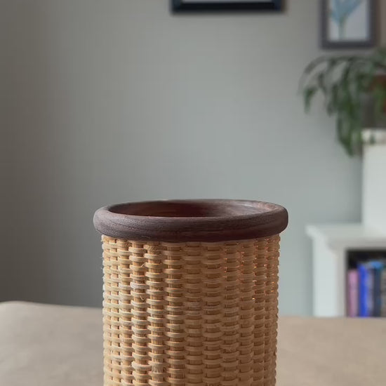 This 3" candy jar with lid is woven with natural weavers around natural staves, then varnished to seal and protect. Perfect for storing shells, coins, flowers, or a koozie; the possibilities are endless!